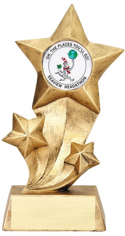 A Beautiful Gold Finish Tri-Star Award With Room For An Engraving Plate