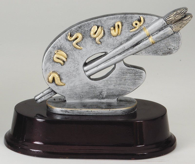 An Elegant Pewter And Gold Artist Pallet Award With Black Finish Base