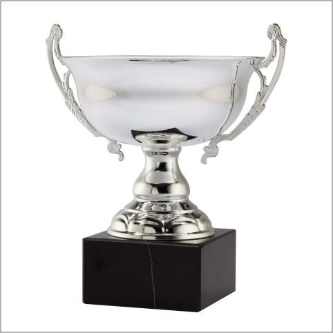 An Elegant Italian Metal Cup And Pedestal Mounted On Genuine Black Marble Base