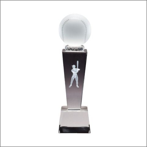 An Elegant And Affordable Crystal Baseball Sport Award With 3-D Lasered Profile Of Sport Figure And Frosted Baseball Top . Includes Deluxe Velour Lined Presentation Box