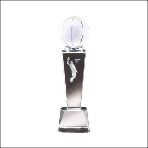 An Elegant And Affordable Crystal Basketball Sport Award With 3-D Lasered Profile Of Sport Figure And Frosted Basketball Top. Includes Deluxe Velour Lined Presentation Box