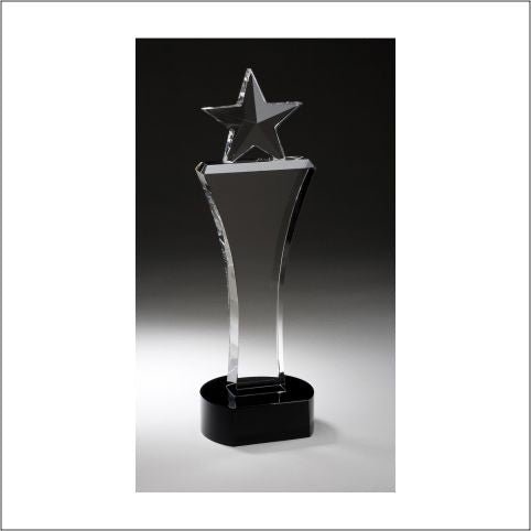 Elegant And Tall Crystal Glass Star On Clear Crystal Tower With Black Crystal Base And Includes A Deluxe Velour Lined Presentation Box