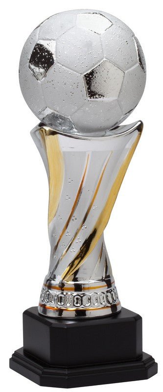 Ceramic Soccer Sport Ball mounted on Ebony Finish Wood Base
