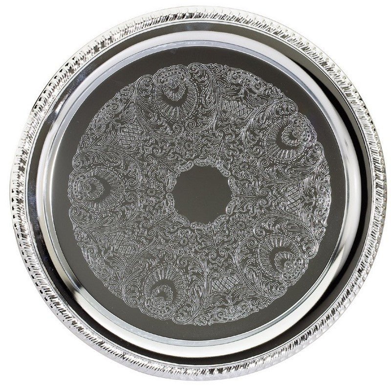 An Elegant Chrome Plated Round Tray With Braided Edge And Area To Engrave
