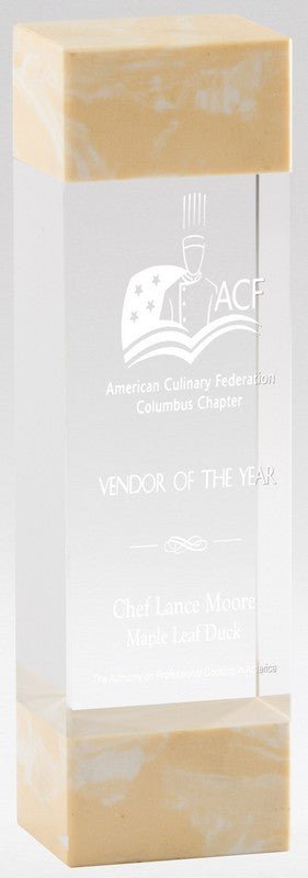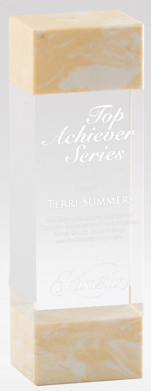 Elegant Clear-Beige-Caramel Crystal Award. Laserable. Packed in Velour Lined Presentation Box