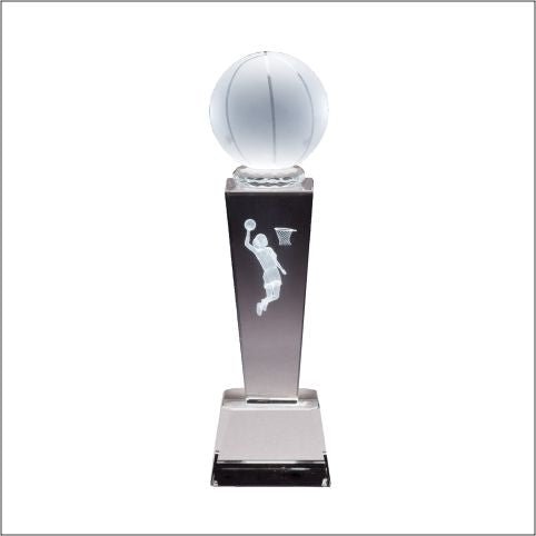 Collegiate Sport Crystal Awards With Individual Basketball, Female Player With Matching Clear Crystal Base. Includes Deluxe Velour Lined Presentation Box