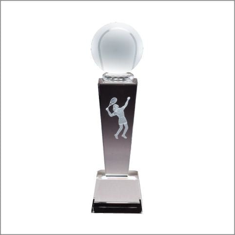 Collegiate Sport Crystal Awards With Individual Tennis, Female Player With Matching Clear Crystal Base. Includes Deluxe Velour Lined Presentation Box