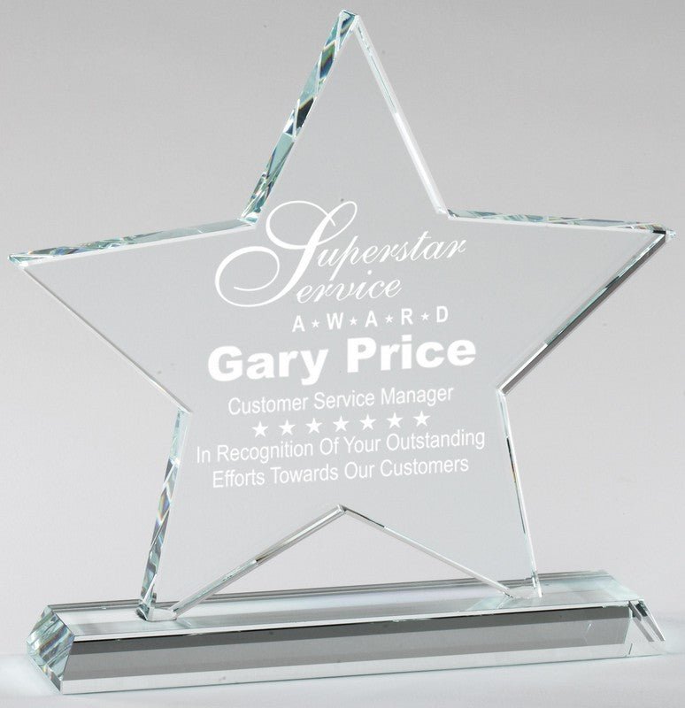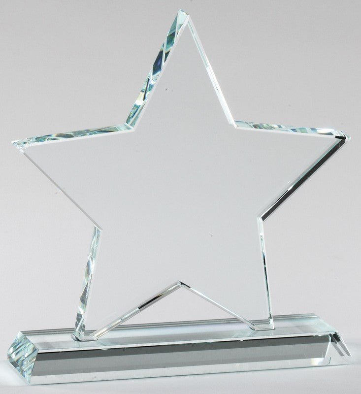 Elegant Design Cry stal Clear Star Award on Crystal Clear Base. Laserable and includes Presentation Box
