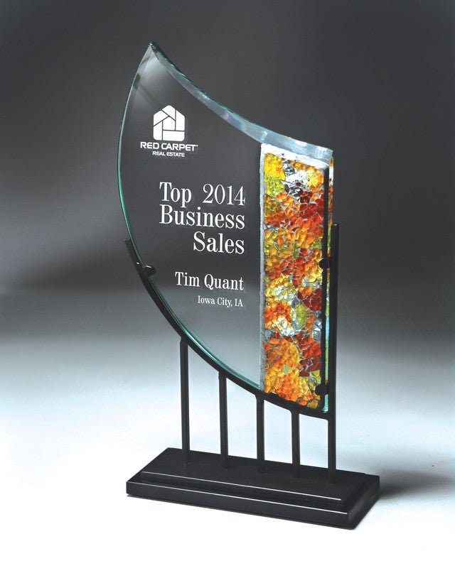 An Elegant Art Deco Glass Sculpture Designed With An Iron Stylized Stand. Each Piece Lasserable And Is Individually Boxed And Laserable.