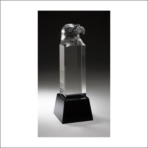 An Elegant Clear Crystal Sculpted Eagle Head On Black Base Including Deluxe Velour Lined Presentation Box