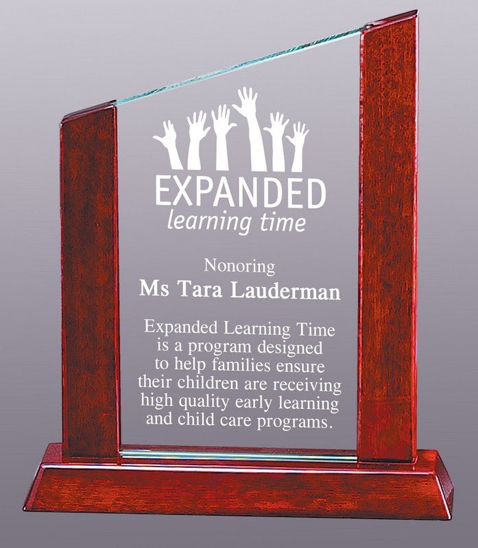 An Elegant Glass Peak On Rosewood Piano Finish Stand. Able To Be Engraved