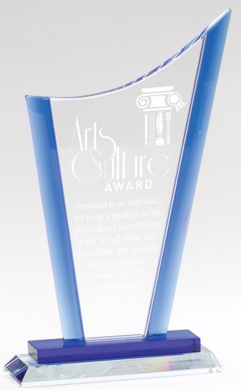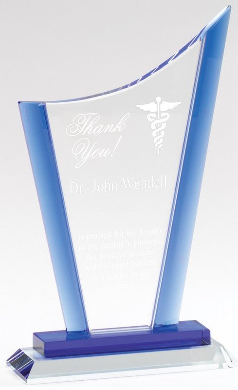 Elegant Ice Blue Edge Crystal Award. Packed in Velour Lined Presentation Box