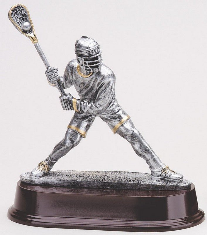 An Elegant Pewter And Gold Lacrosse, Male Shooter Sport Award On Dark Finish Base With Room For An Engraving Plate
