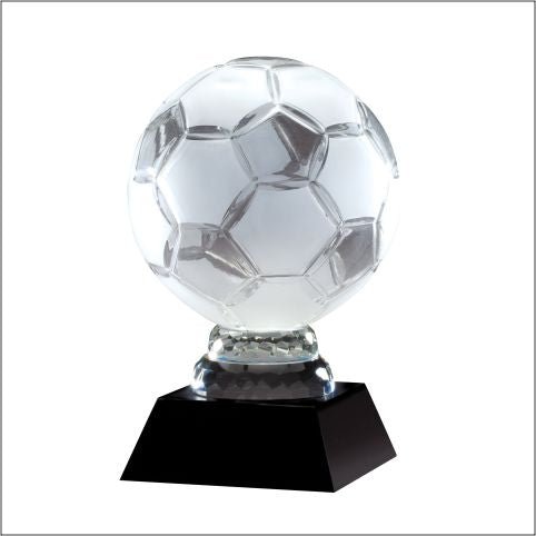 24% Lead Crystal Frosted Soccer Award On Black Crystal Base. Includes Deluxe Velour Lined Presentation Box