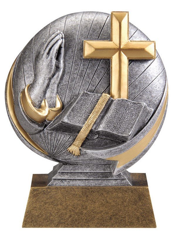 An Action 3-D Pewter And Gold Sport Scene With Religion On Bronze Base With Room For An Engraving Plate