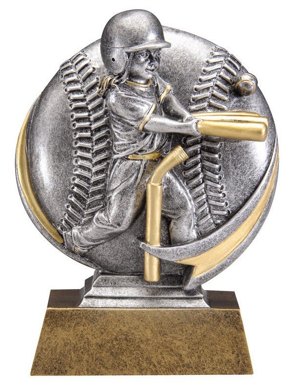 An Action 3-D Pewter And Gold Sport Scene With T-Ball, Female, On Bronze Base With Room For An Engraving Plate
