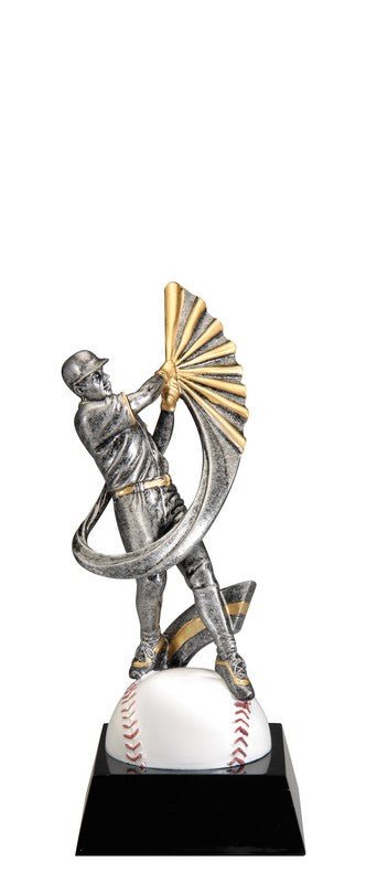 Action Swoosh Pewter And Gold Baseball, Male Figure With Full Color Sport Icon On Black Finish Base