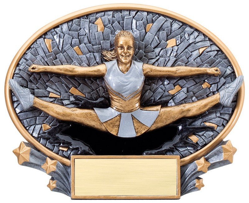 An Explosion Of Full Color Cheer, Female Action With Gold Border And Room For An Engraving Plate