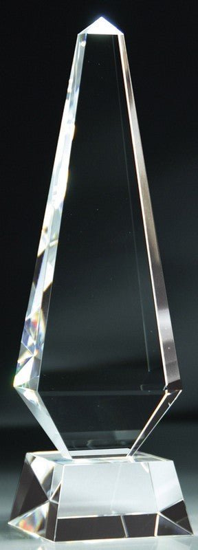 A Statuesque Crystal Obelisk On Matching Crystal Base. Laserable With Deluxe Velour Lined Presentation Box