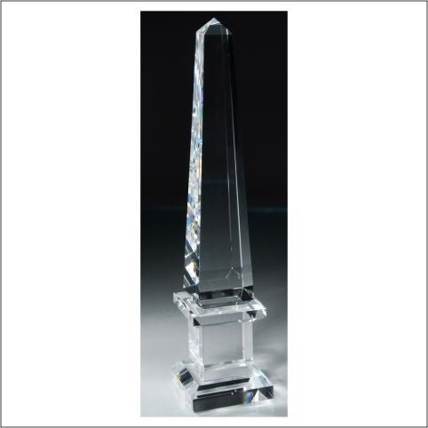 Elegant Crystal Obelisk With Double Stacked Base, Laserable Base And Deluxe Velour Presentation Box