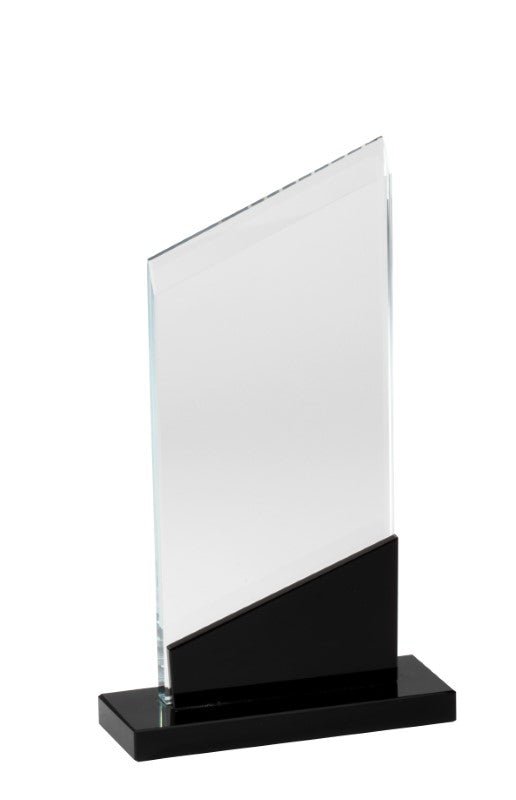 Elegant Angled Glass Award with Onyx Swirl Accent, Individually Boxed, Laserable