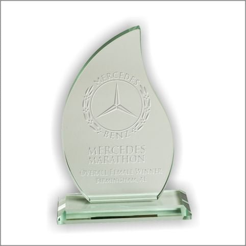 An Elegant Jade Glass Flame Award On Matching Jade Base
