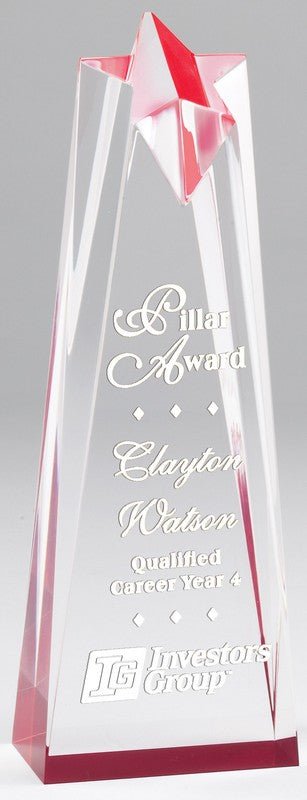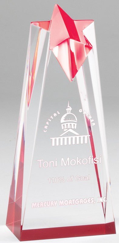 Reflective Star Crystal Tower Red Acrylic Award 6 Std Pack Laserable 3 1/2″ X 6″ X 2″