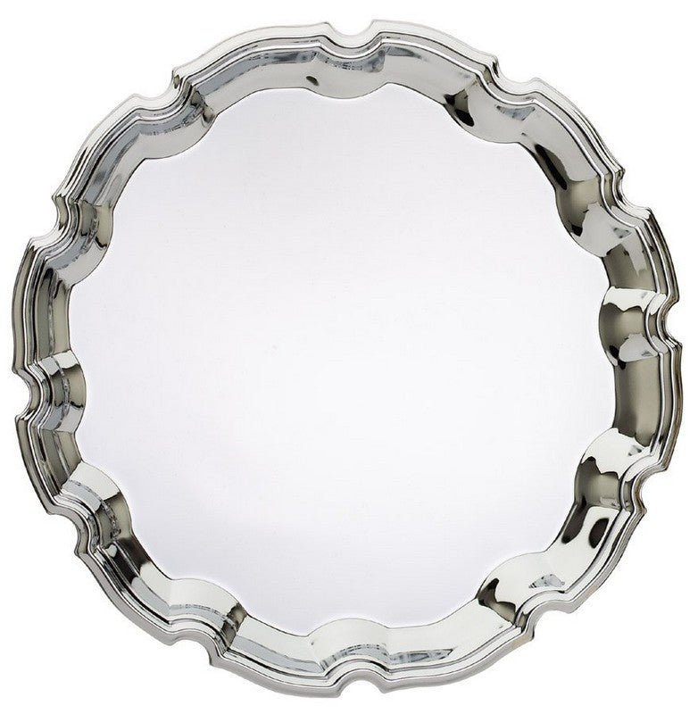 An Elegant Chrome Plated Round Tray With Scalloped Edge And Full Engraving Area