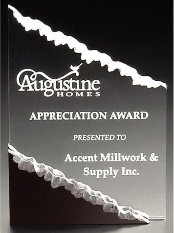 A Chizeled Acrylic Mountain Award With Black Accent. Fully Laser And Rotary Engravable