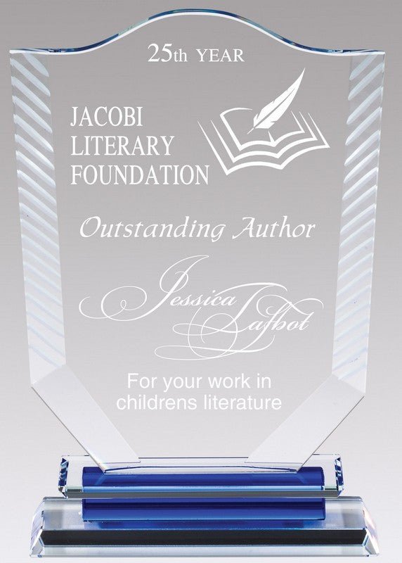 Shield Etched Edge Large On Blue And Clear Crystal Base