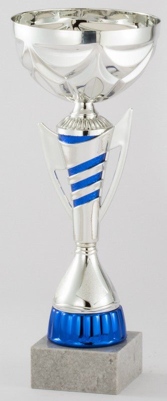 Silver and Blue Plastc Cup with Genuine White Marble Base. Includes Box.