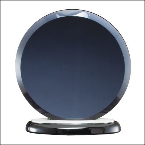 Elegant Smoked Blue Glass Award On Black Base With Brushed Aluminum Accents And A Plate For Personalization