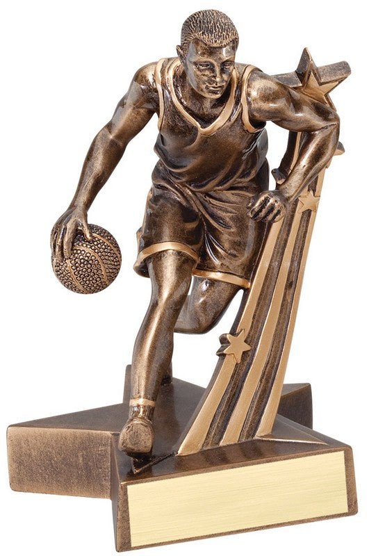 Action Super Star Bronze And Gold Finish Basketball, Male On Matching Swoosh Star Base With Room For An Engraving Plate