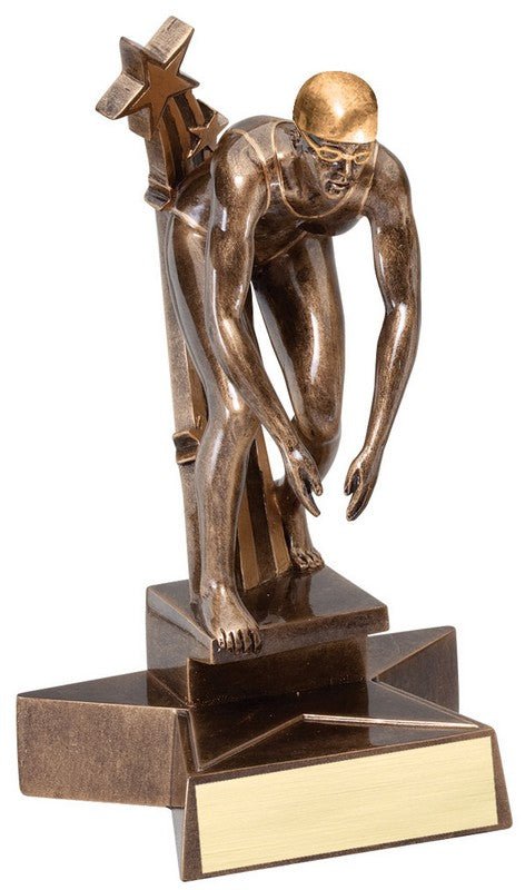 Action Super Star Bronze And Gold Finish Swim, Female On Matching Swoosh Star Base With Room For An Engraving Plate