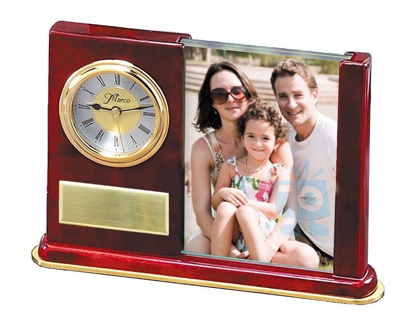 An Elegant Precision Rosewood Finish Quartz Clock With Brass Accents And Alarm, Individually Boxed.